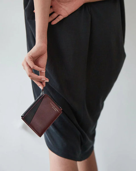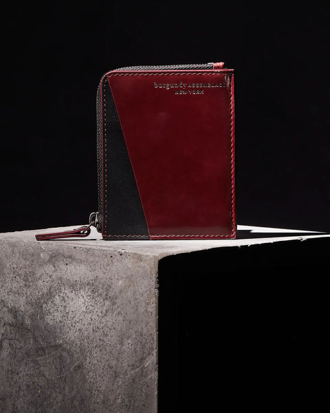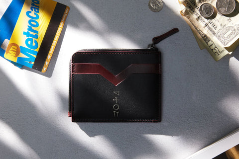 Not a fan of bulky wallets? Neither are we. Beta is specially designed to hold multiple cards and cash while appearing slim and elegant. The two-toned wallet is composed of burgundy and black vegetable-tanned leather, offering three slots for cards and a zippered compartment for bills and coins. Made in collaboration with Tina Fun, we reworked this piece repeatedly to ensure that the cards fit easily without sacrificing the wallet’s graceful profile.