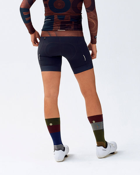 Designed for ergonomic comfort, the laser-cut bib straps contour seamlessly around your shoulders, while the laser-cut leg gripper with direct-applied silicone ensures a low-profile finish and keeps the shorts securely in place. The inclusion of reflective tabs on both legs enhances visibility and safety during low-light conditions.